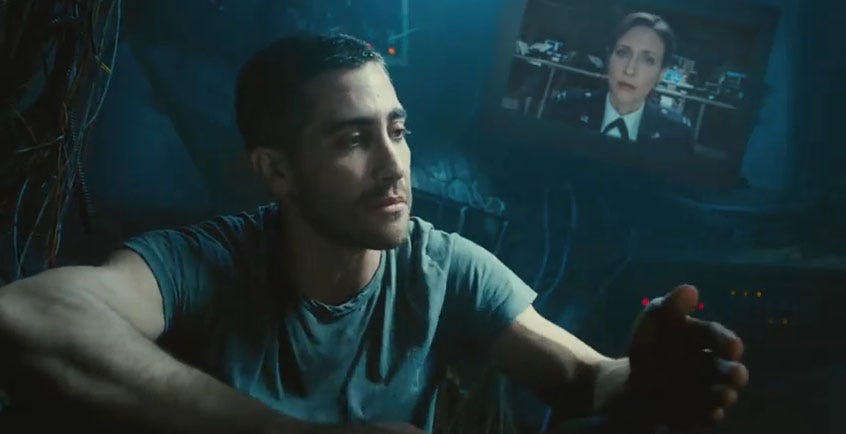 The trial and error of Stevens repeating the same eight minutes until he completes the mission is a good conceit for a movie that rolls the end credits in less than ninety minutes. Though, it doesn’t make a lot of sense, the narrative is even further condensed by the fact that the bulk of the action takes place on only one of many train cars. There’s never any explanation as to how or if this shadowy military branch knows the bomb is on the same train car as Stevens’ avatar, a teacher named Sean Fentress.