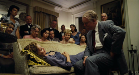 Organized religion is built around order and control and by extension cults prey on vulnerable lost souls like Freddie with an extreme take on those notions. I can’t help but make another connection when Freddie smokes Kool cigarettes (drinking the Kool-Aid), which elicits from Dodd a chuckle and a declaration that “I like Kools.” Through his loyalty to The Cause, Freddie finally feels a sense of belonging and lashes out at anything that threatens it. After Dodd is ambushed and embarrassed by a skeptic at a New York party, Freddie takes Dodd’s son-in-law to the guy’s apartment to beat the shit out him, reflecting the intimidation tactics Scientology is now known to employ. However, the Master doesn’t condone Freddie’s behavior then or when he’s arrested in Philadelphia and reacts like a mad dog, requiring three police officers to bring him down.