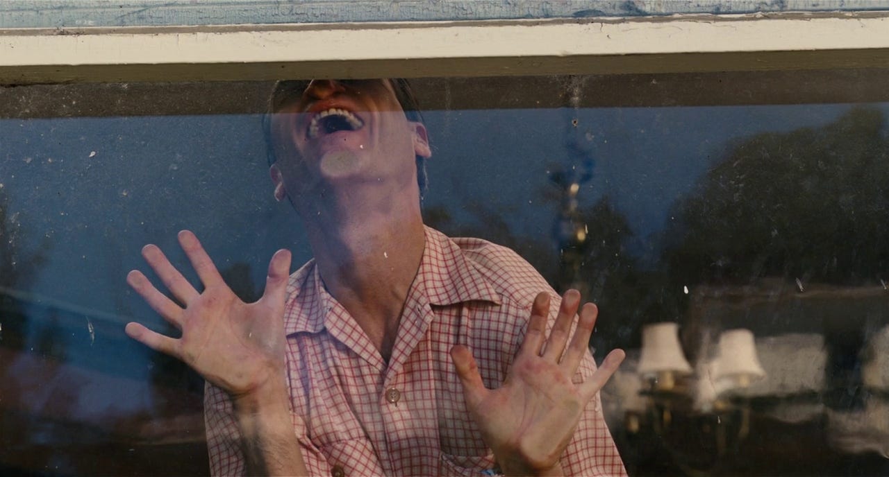 Dodd’s adult son, Val, hangs around the periphery of the group, but he’s not a believer. When Freddie calls him out for it, the young man looks him in the eyes and states the first truth he’s heard in a while: “He’s making this all up as he goes along.” Almost immediately after this revelation, the police show up to arrest Dodd for fraud. Freddie’s rabid behavior during the arrest and his stay in the holding cell is partly an internal struggle of knowing Val’s right, but not wanting to accept it. The image of Freddie stomping the toilet to pieces as Dodd stands calmly and silently in the neighboring cell is a perfect illustration of their dynamic and it ends with Freddie echoing Val’s statement repeatedly in Dodd’s face. Val, however, is just as much of a hypocrite as he sits idly by, reaping the benefits of his father’s destructive grifting.